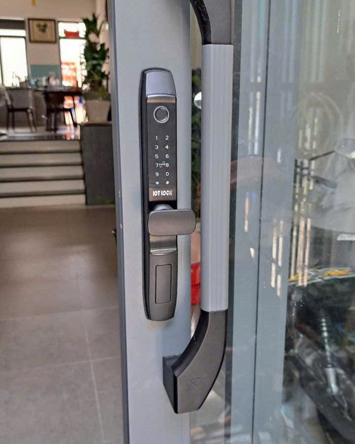 Lắp đặt khóa vân tay thông minh cửa lùa nhôm xingfa A5000