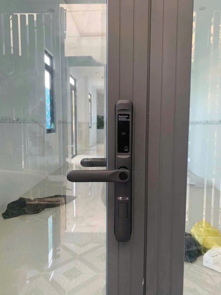 Lắp đặt khóa vân tay cửa nhôm xingfa A3000.