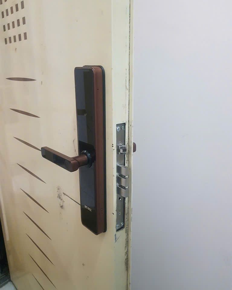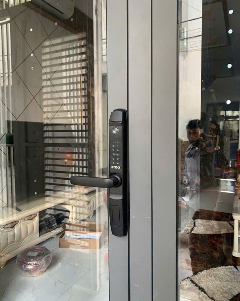 Hình ảnh lắp đặt thực tế khóa vân tay Iot Lock: