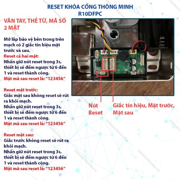 Muốn reset thiết bị khi không có mật khẩu, vân tay người quản lý, phải reset bằng nút trên board mạch.